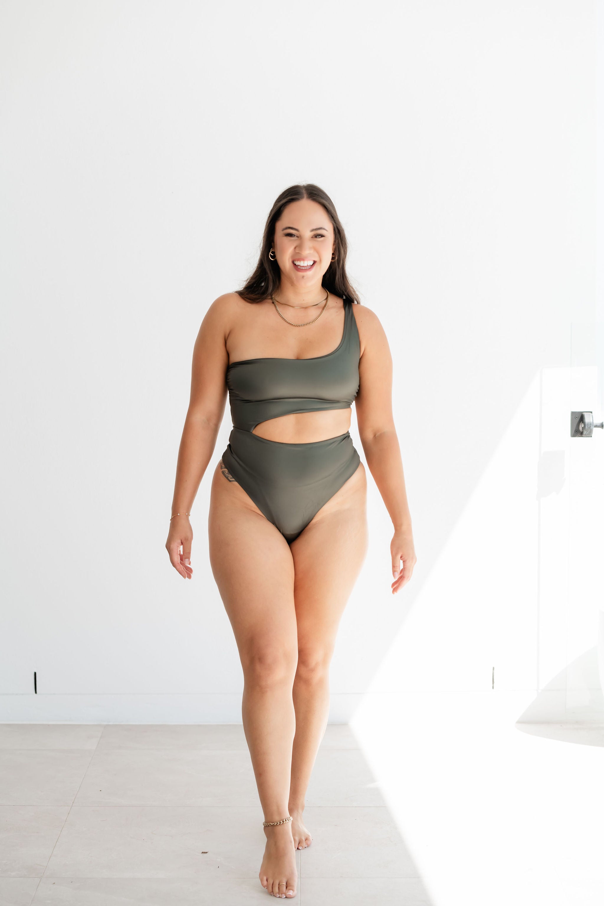 Estrella Full Piece is designed as a cut out asymmetrical full piece with a waist cut out detail, this is both flattering and versatile, easily transitioning into a stylish body suit. It's one shoulder design adds a touch of elegance, making it the perfect addition to any wardrobe.